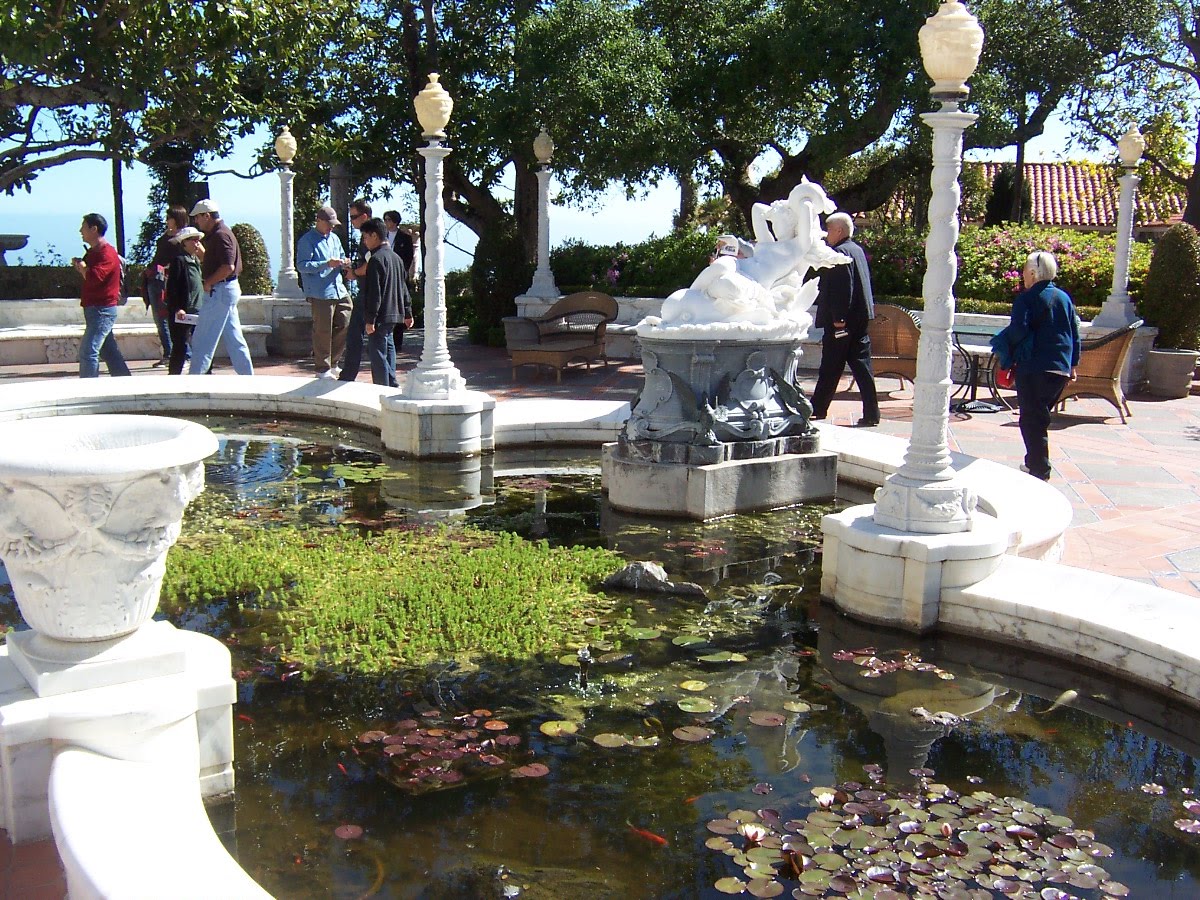 While at the Visitor Center we watched a film that told us how William Hearst's (WRH) father made his money. He discovered the Comstock Lode. Silver. It was a good movie with some filming that made us feel like we were flying around the castle and along the shoreline.