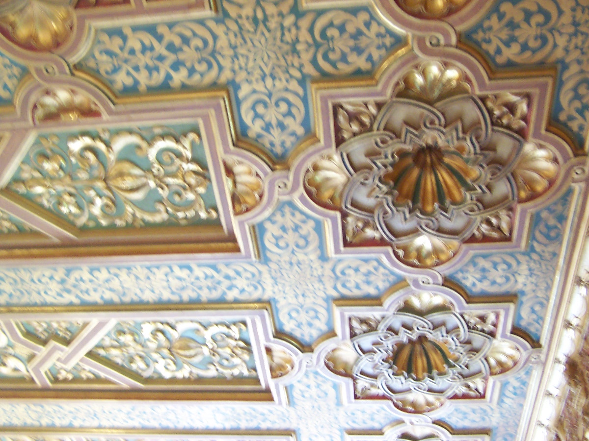 The brown stuff is teak that is intricately carved. This teak covered balcony and the other two balconies with grillwork enter into WRH's bedroom.
