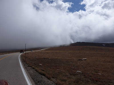 | We reached the clouds as we neared the top. I think this is the Hellroaring Plateau. |