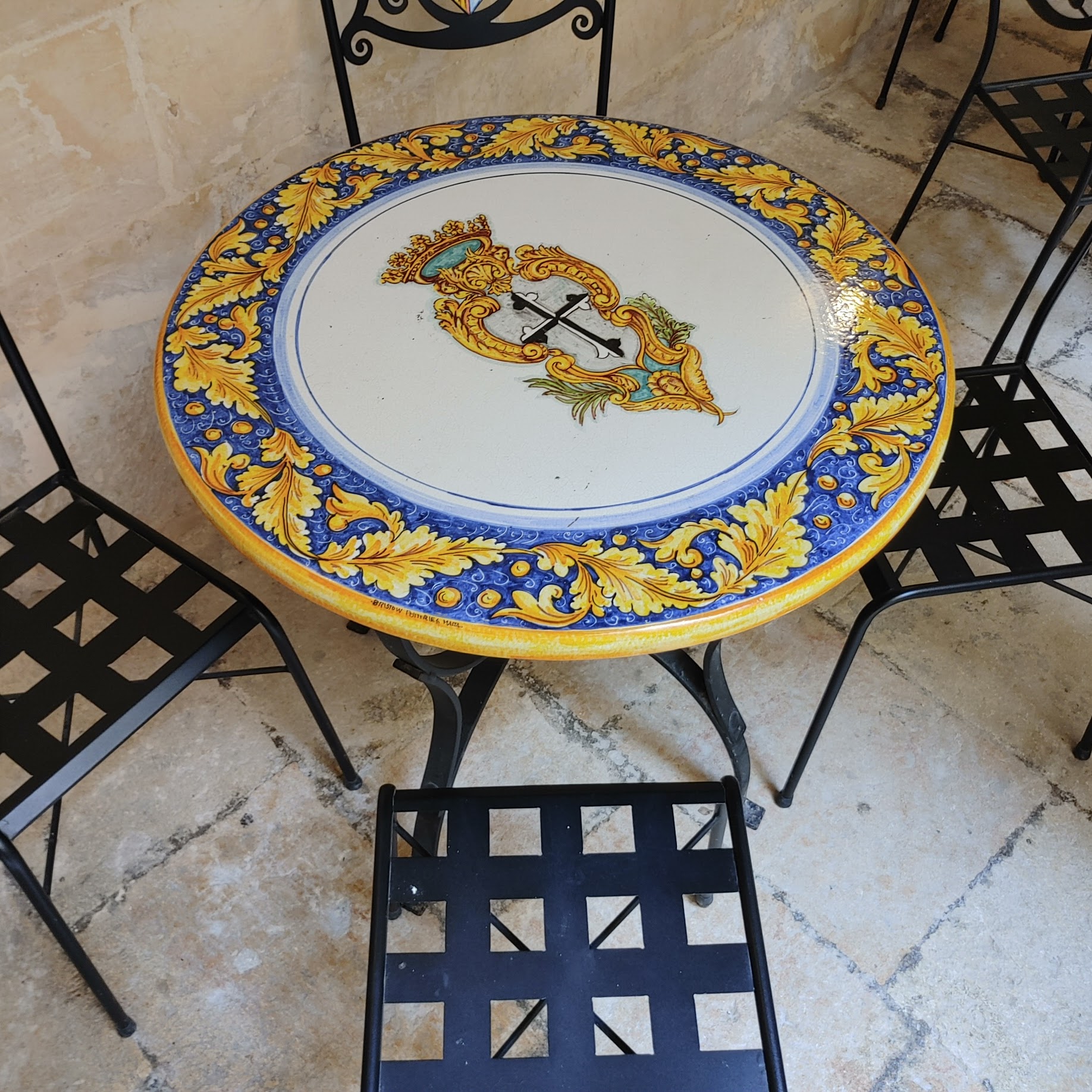 | I'm assuming this symbol on a table in the courtyard was from the time of the Inquisition |
