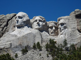From the National Park Service brochure, "When sculptor Gutzon Borglum looked up on the knobby, cracked face of Mount Rushmore in the Black Hills of South Dakota, he saw a vision of four United States presidents carved into the mountain."